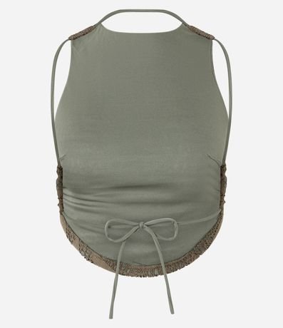Ref: Blusa frente única diferenciada, sem mangas, com forro e superfície texturizada.