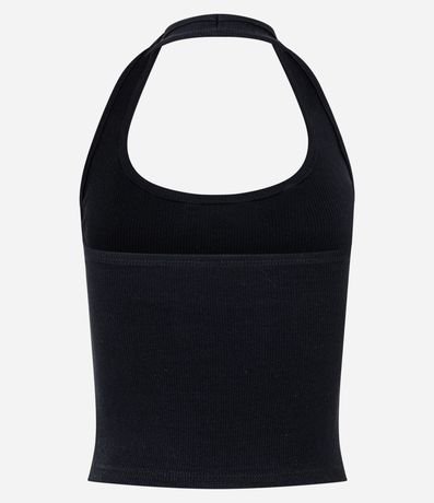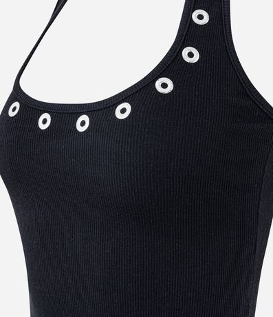 Ref: Blusa feminina confeccionada em ribana mais sustentável, no modelo frente única. Possui gola redonda, com ilhoses e sem estampa.