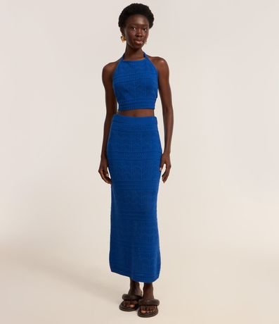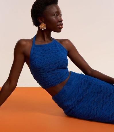 Ref: Blusa frente única, confeccionada em tricô com mix de pontos, com amarrações no pescoço e nas costas. Este produto possui viscose certicada em sua composição, além de ter sido produzido através de processos mais sustentáveis, sendo ambientalmente mais responsável.