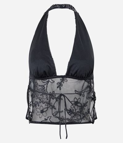 Ref: Blusa frente única em tule com detalhe bordado que acrescenta sofisticação ao visual. Possui alça ajustável por amarração e caimento leve que valoriza o shape. Ideal para compor produções modernas e elegantes para a noite ou eventos especiais.