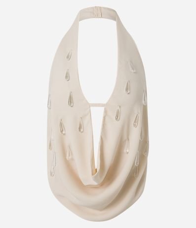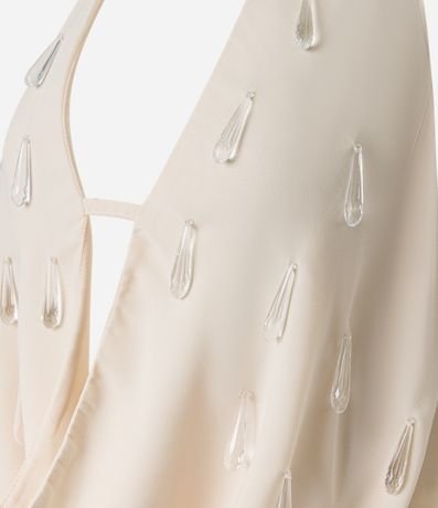 Blusa feminina confeccionada em crepe, no modelo frente única regular. Possui decote degagê e aplicações de pedras.