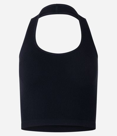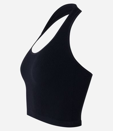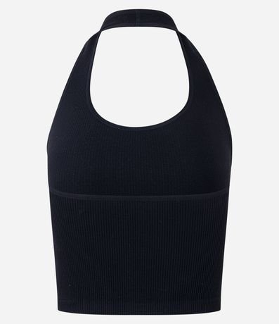 Blusa sem manga, frente única, seamless - sem costura e confeccionada em poliamida.