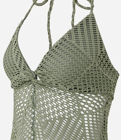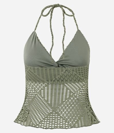 Ref: Blusa feminina frente única confeccionada em tecido texturizado, com detalhe de nó na parte frontal e abertura inferior, trazendo leveza e estilo ao visual. Possui amarração no pescoço e modelagem ajustada.