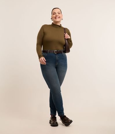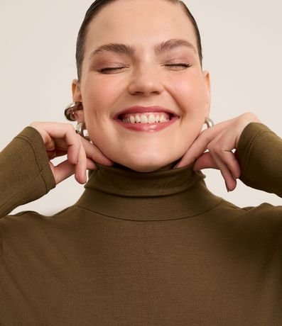 Ref: Blusa feminina Curve & Plus Size, confeccionada em viscose com elastano que permite maior elasticidade, com gola alta, manga longa e sem estampa.