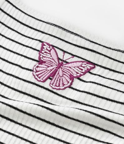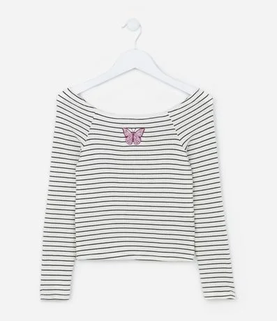 Blusa Infantil Canelada com Bordado Borboleta - Tam 5 A 14 Anos