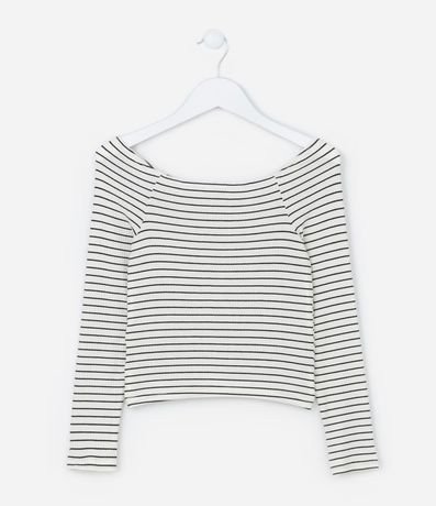 Blusa infantil com textura canelada, gola canoa e bordado de borboleta.