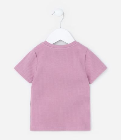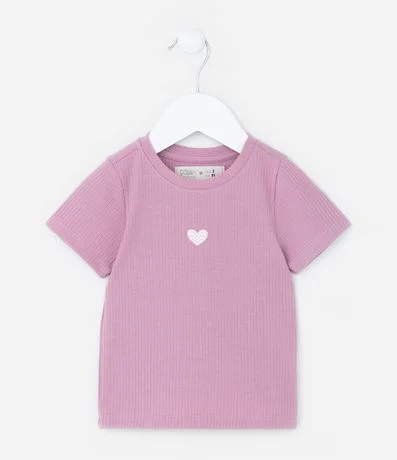 Camiseta infantil confeccionada em algodão, com gola redonda, mangas curtas e bordado de coração no peito. Possui textura canelada.