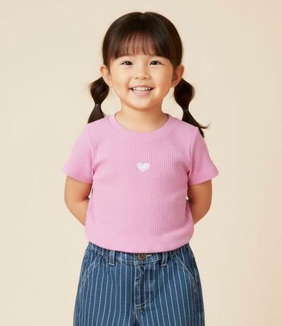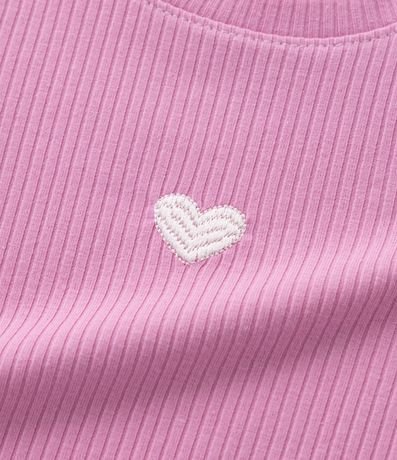 Blusa Infantil Canelada com Bordado de Coração - Tam 1 a 6 Anos