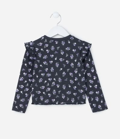 Blusa infantil canelada, com gola redonda, manga longa com babadinhos nas cavas e estampa floralzinha, super delicada!