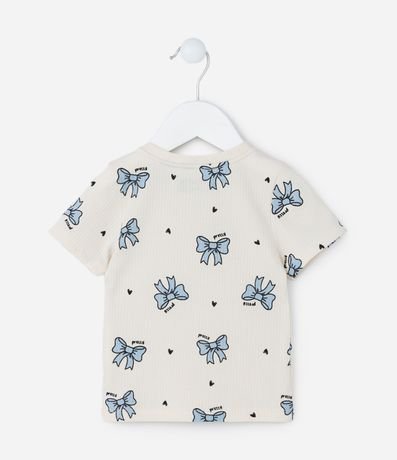 Ref: Blusa infantil canelada, com gola redonda, mangas curtas e estampa de lacinhos.
