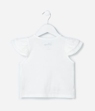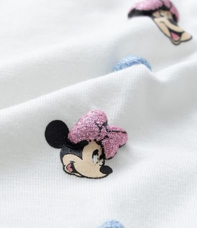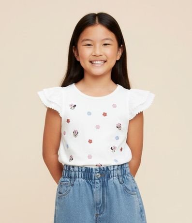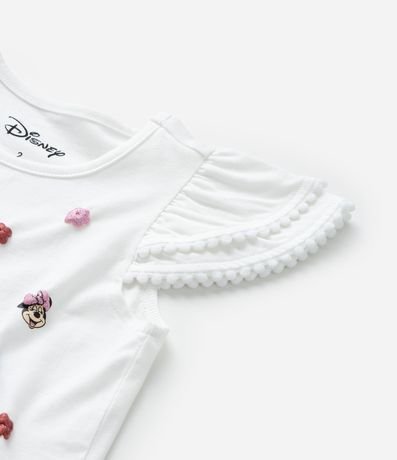 Ref: Blusa infantil confeccionada em algodão de material mais sustentável, com gola redonda, manga curta com babadinho e pompons, estampa da Minne em relevo.