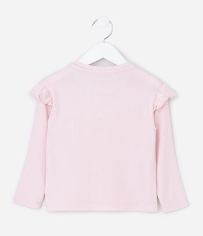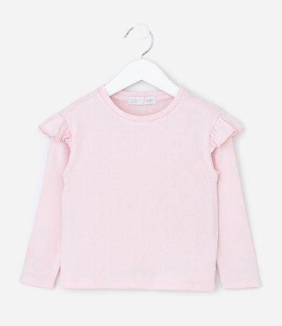 Ref: Blusa infantil confeccionada em efeito tricô leve com viscose certificada, oferecendo toque macio e caimento confortável. Possui gola redonda, mangas longas e babadinho aplicado nos ombros, trazendo visual delicado. A barra e os punhos com acabamento simples garantem praticidade no dia a dia.
