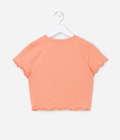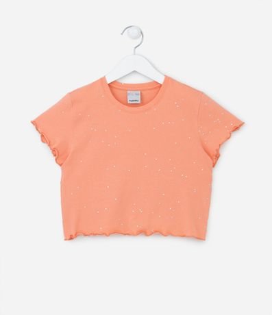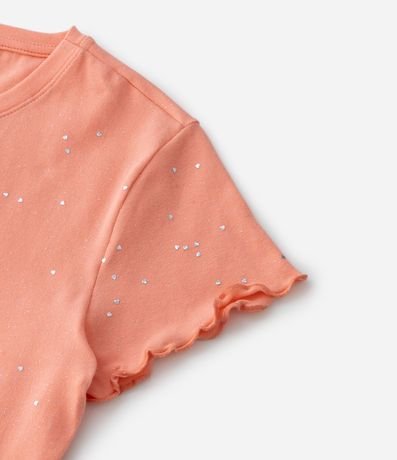 Blusa infantil, confeccionada em material responsável, corações brilhosos e glitter aplicados e detalhe em frufru.