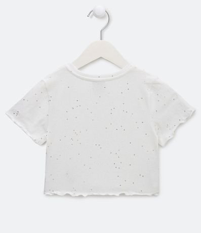 Blusa infantil, confeccionada em material responsável, corações brilhosos e glitter aplicados e detalhe em frufru.