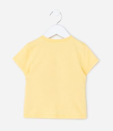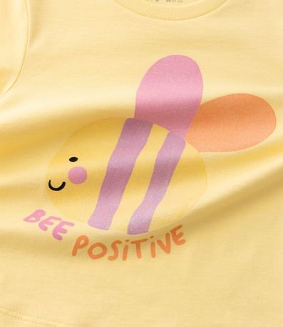 Ref: Blusa infantil confeccionada em algodão mais sustentável através de boas práticas ambientais. Possui gola redonda, manga curta, estampa de abelhinha e lettering "Bee positive".