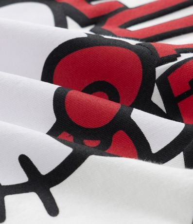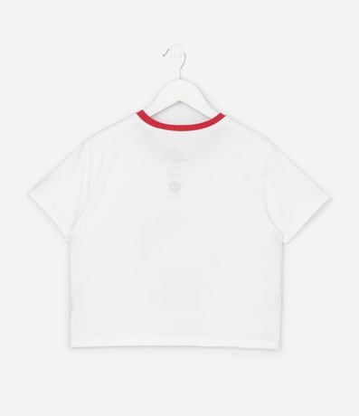 Ref: Blusa infantil confeccionada em meia malha macia com gola redonda e mangas curtas. Possui estampa localizada da personagem Hello Kitty com lettering e detalhes contrastantes na gola. Confeccionado em algodão certificado BCI e boas práticas ambientais, ideal para looks casuais divertidos.