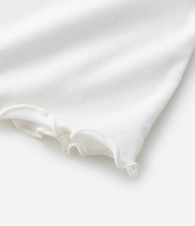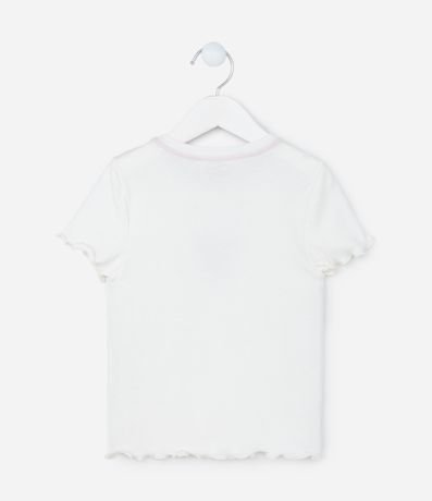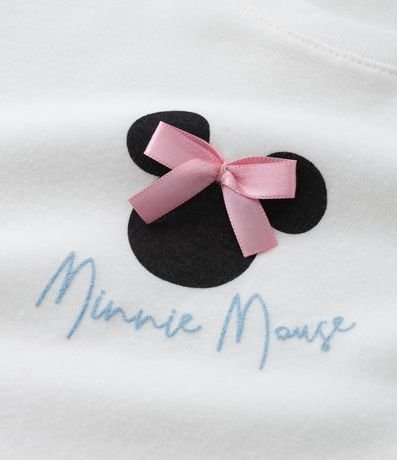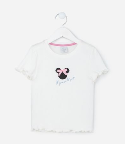 Ref: Blusa infantil confeccionada em algodão, com gola redonda, mangas curtas, frufru nas bordas e estampa da Minne com lacinho delicado aplicado.