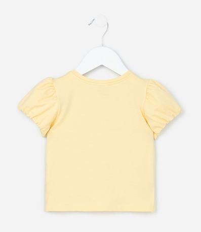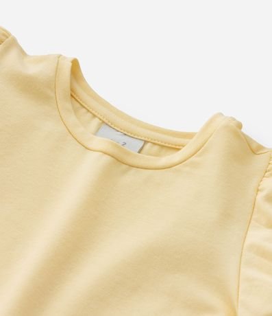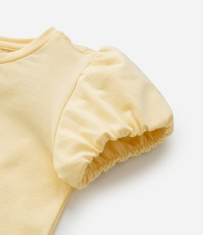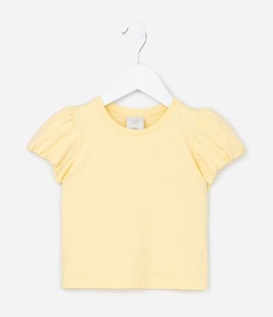 Ref: Blusa infantil confeccionada em algodão mais sustentável. Possui gola redonda, manga curta, bufante e sem estampa.