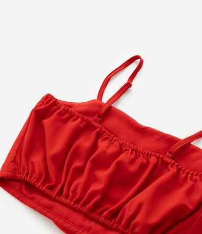 Ref: Blusa infantil confeccionada em tule, no modelo cropped. Possui decote quadrado, alças finas, ajustáveis e coração aplicado.