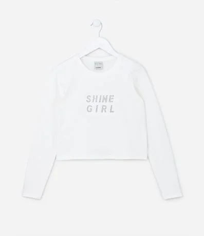 Ref: Blusa infantil confeccionada em malha de algodão com elastano, com gola redonda e mangas longas. Possui estampa frontal em lettering "shine girl", com aplicação de termocolantes.