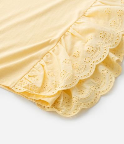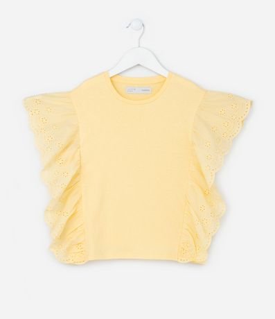Ref: Blusinha infantil confeccionada em cotton de material mais sustentável, com gola redonda, babadinho nas cavas e laterais.
