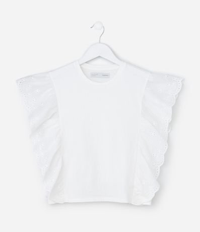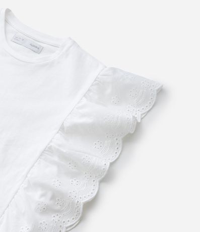 Ref: Blusinha infantil confeccionada em cotton de material mais sustentável, com gola redonda, babadinho nas cavas e laterais.
