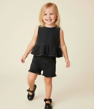 Blusa Infantil em Jeans com Babado - 1 a 6 Anos