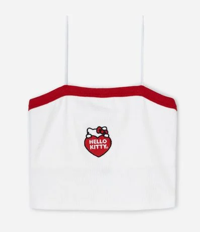 Ref: Blusinha infantil confeccionada em ribana de material mais sustentável. Possui alças finas e viés contrastante no busto, além de um bordado da Hello Kitty, super fofo"