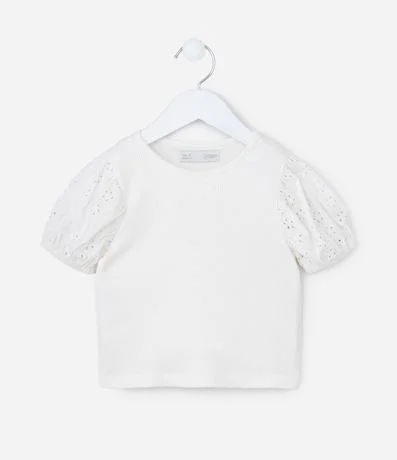 Blusa Infantil em Ribana com Broderie na Manga - Tam 1 a 6 Anos