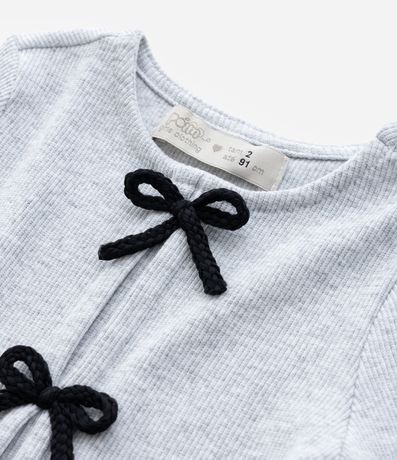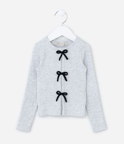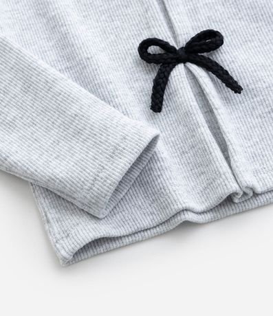 Ref: Blusa infantil confeccionada em ribana de material e processo mais sustentável. Possui gola redonda, mangas logas e abertura frontasl com fechamento por lacinhos contrastantes.