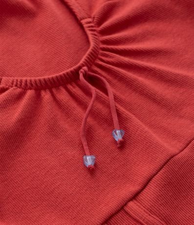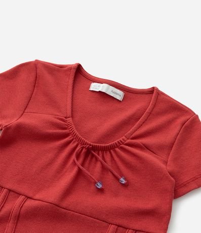 Ref: Blusa infantil confeccionada em ribana mais sustentável através de boas práticas ambientais. Possui gola em u, com lacinho e pingente de coração, manga curta e detalhes em relevo.