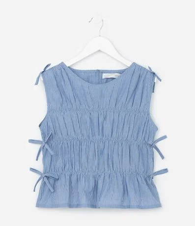 Blusa Infantil em Tricoline com Estampa de Listra e Amarrações - Tam 5 a 14 Anos