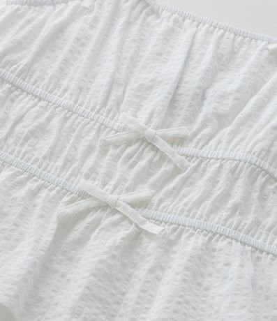 Ref: Blusa infantil confeccionada em tricoline mais sustentável. Possui decote quadrado, alcinhas, sem estampa e com lacinhos aplicados.