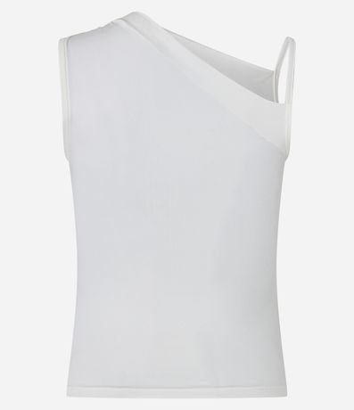 Blusa com decote assimétrico, alcinha fina e drapeado na manga e confeccionada em jersey.