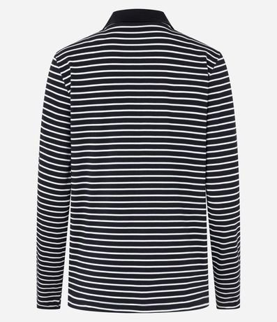 Blusa de gola polo contrastante, confeccionada em algodão, com bordado de coraçõesno peito e listras horizontais. Este produto possui algodão certificado BCI em sua composição, sendo ambientalmente mais responsável.