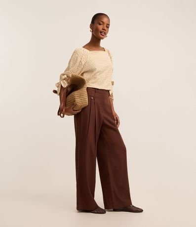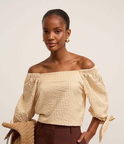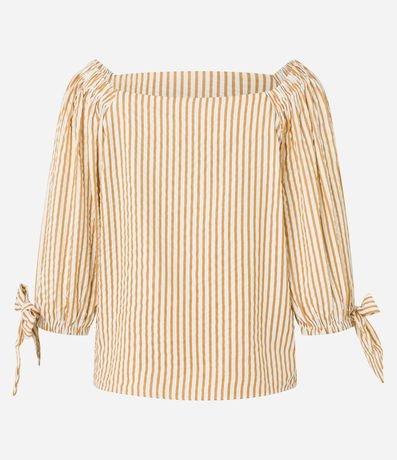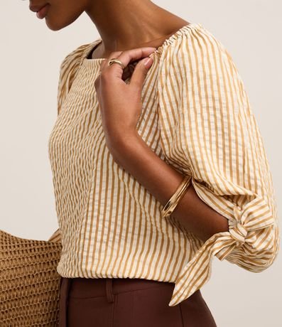 Ref: Blusa de mangas curtas, confeccionada em tricoline, com decote quadrado e amarrações nos punhos. Peça tem listras verticais. Este produto possui algodão certificado BCI em sua composição, além de ter sido produzido através de processos mais sustentáveis com boas práticas ambientais, sendo ambientalmente mais responsável.