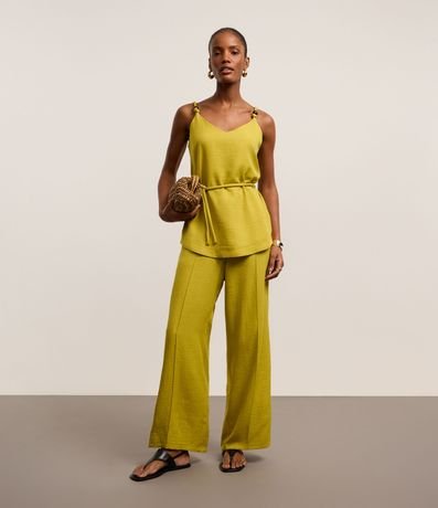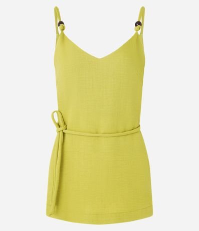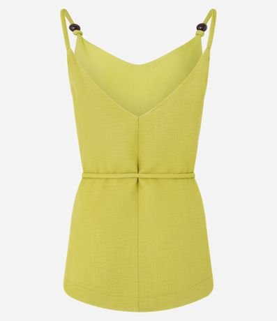 Ref: Blusa alongada de alcinhas finas com miçangas com aspecto de madeira, confeccionada em crepe, com decote V e amarração na cintura. Este produto foi fabricado através de processos mais sustentáveis, adotando boas práticas ambientais.