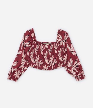 Ref: Blusa plus size de mangas 3/4 confeccionada em viscose com decote quadrado, costas decotadas além de lastex nos punhos e no busto. Dispõe também de flores estampadas por toda a blusa.