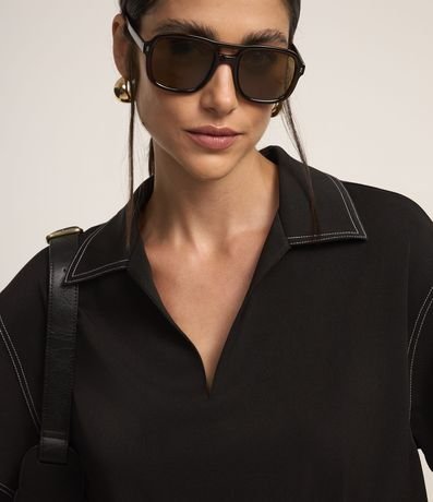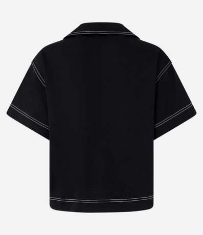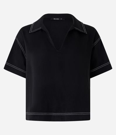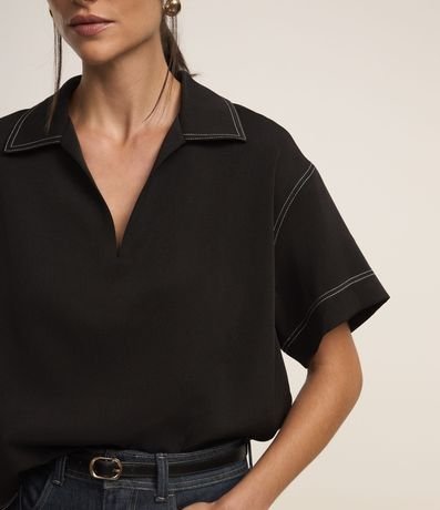 Ref: Blusa manga curta alfaiataria com decote V e gola camisa. Possui pespontos contrastantes.