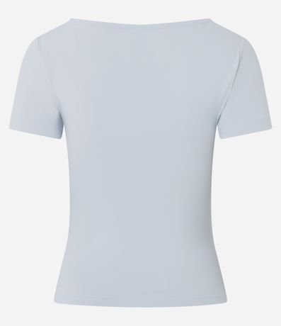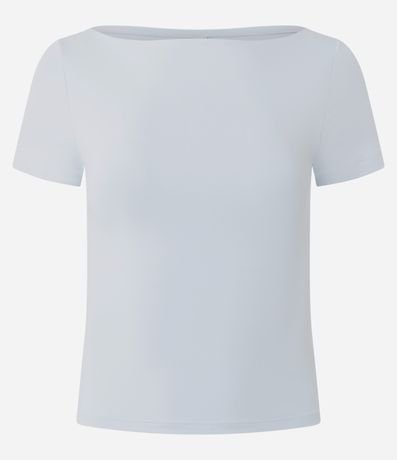 Blusa feminina confeccionada em poliamida, oferecendo toque macio e caimento ajustado. Possui modelagem clássica com manga curta e decote canoa, garantindo versatilidade e conforto.