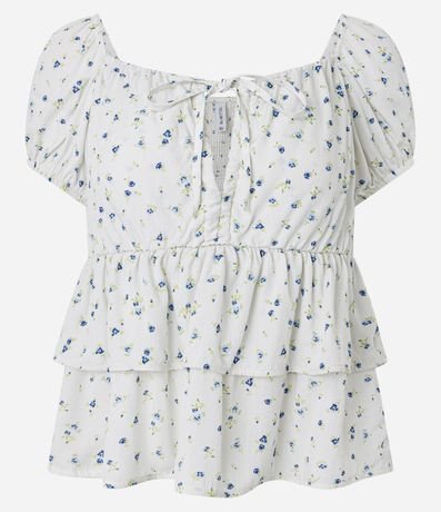 Ref: Blusa feminina confeccionada em viscose, garantindo leveza e conforto. Possui manga curta, decote em V com amarração e babados em camadas, trazendo movimento e delicadeza. Estampa floral Liberty adiciona charme romântico.