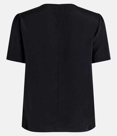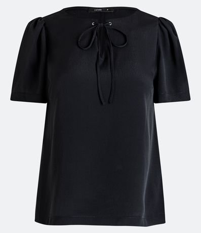 Ref: Blusa em crepe com decote com amarração por cordão e ilhoses além de mangas curtas bufantes. Possui textura levemente acetinada.