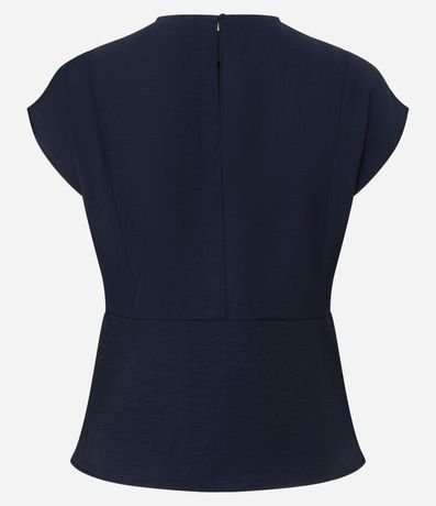Ref: Blusa feminina em crepe com mangas curtas estruturadas e barra em peplum. Possui decote fechado, abertura posterior com botão e costuras discretas na cintura. Tecido leve, textura sutil e acabamento totalmente liso.