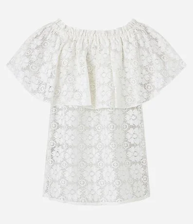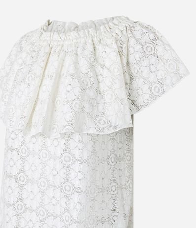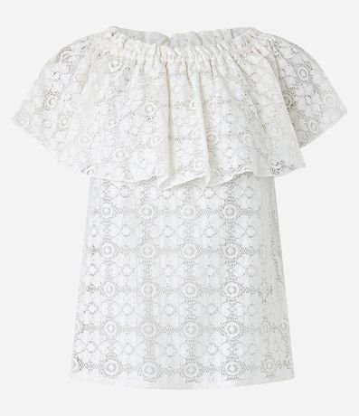 Blusa Manga Curta em Laise com Babado no Decote Ombro a Ombro