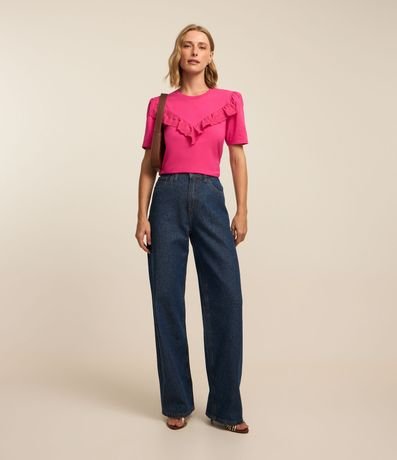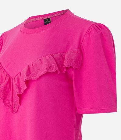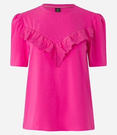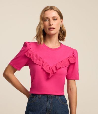 Blusa Manga Curta em Meia Malha com Babado de Renda