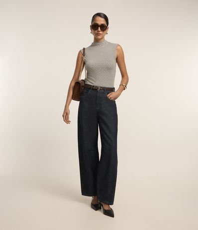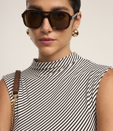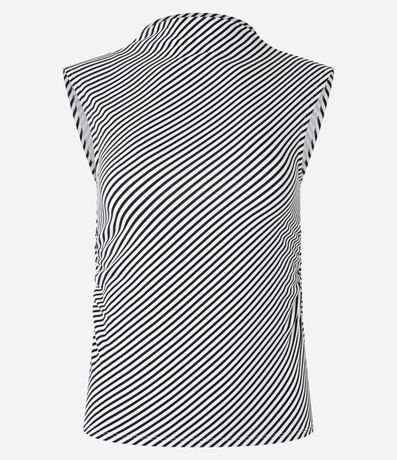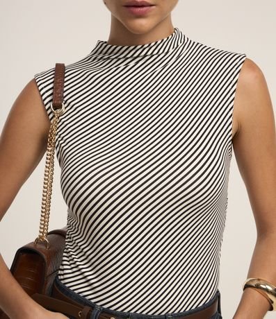 Ref: Blusa manga curta confeccionada moletinho com estampa de listras e gola alta.