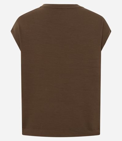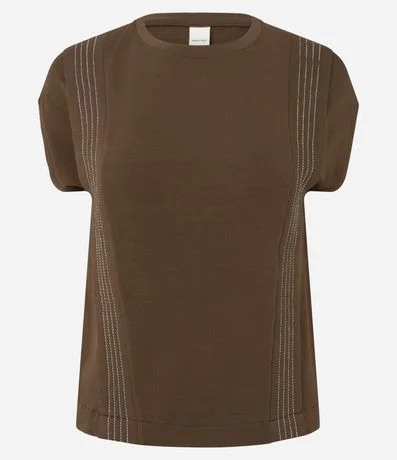 Ref: Blusa feminina em moletinho sem felpa, com mangas curtas sem cava e modelagem reta. Apresenta pespontos verticais contrastantes na frente e barra reforçada.