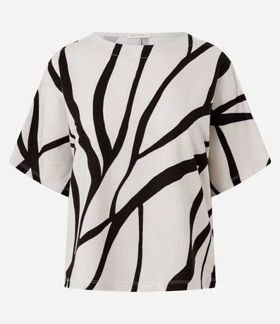 Blusa Manga Curta em Piquet com Estampa Abstrata