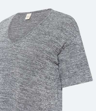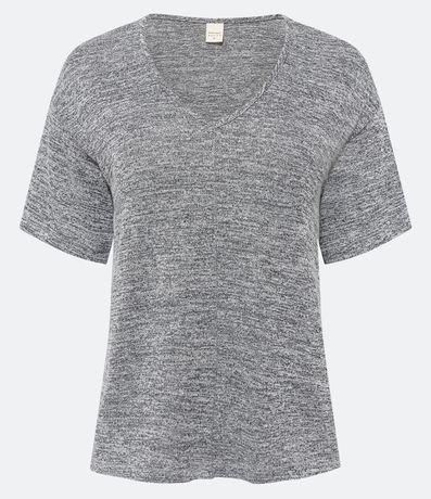 Blusa Manga Curta em Tricô Mescla com Recorte Frontal Costurado