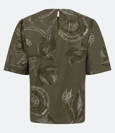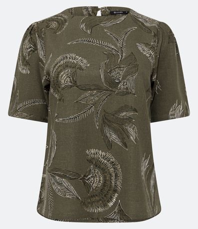 Blusa Manga Curta em Viscolinho com Folhagens Estampadas